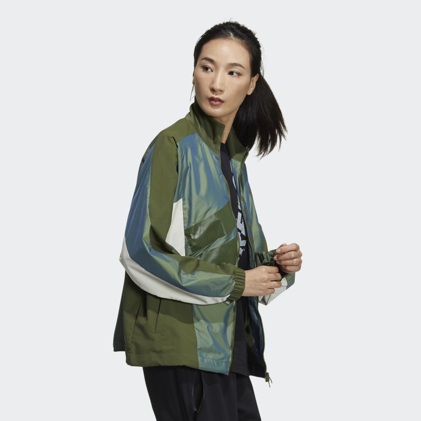 Không thể bỏ lỡ. Huy hiệu thể thao của adidas ngoại cỡ mang đến cho chiếc áo khoác này một vẻ ngoài thể thao và thể hiện niềm tự hào về thương hiệu. Khi chạm vào mượt mà, cấu trúc dệt có các tấm ánh kim. Ánh sáng lung linh nhẹ đó sẽ mang lại một màu sắc được chào đón cho những ngày xám lạnh.