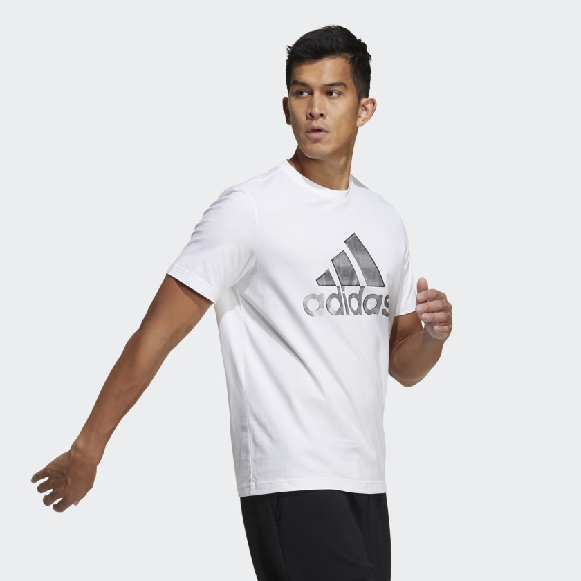 Nâng tầm tủ đồ thể thao của bạn. Huy hiệu thể thao adidas bóng bẩy tỏa sáng ở mặt trước chiếc áo thun casual này. Chất vải cotton mềm mại cho cảm giác thoải mái kinh điển.