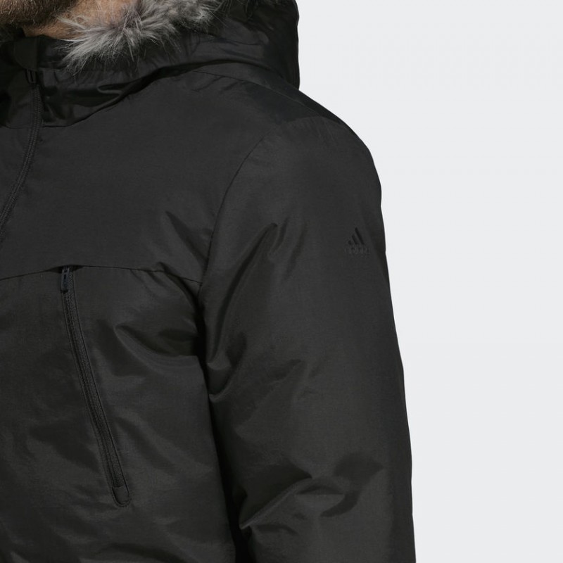Áo khoác nam với chất liệu cotton tổng hợp bên trong được thiết kế để giữ ấm cho cơ thể bạn ngay cả khi trời lạnh. Mũ trùm đầu có lớp lông giả mềm có thể tháo rời để tạo vẻ ấm áp. Kiểu dáng cổ cao ôm sát với cổ tay co co giãn để chắn gió và tuyết xâm nhập.