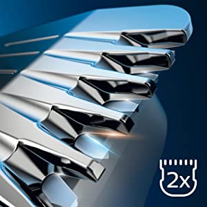Tận hưởng độ chính xác tối đa với công nghệ DualCut, bao gồm gấp đôi lưỡi dao. Các lưỡi thép nhẹ nhàng cọ vào nhau - tự mài sắc khi chúng hoạt động. Điều này dẫn đến lưỡi dao sắc bén như ngày 1 sau 3 năm sử dụng.