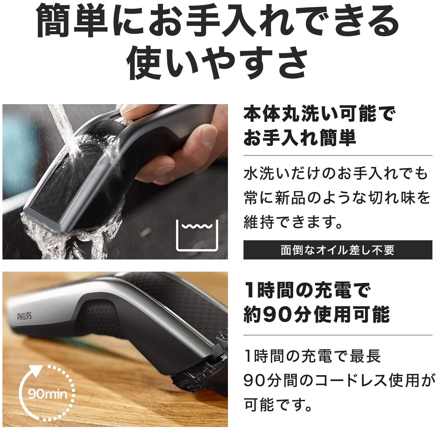 Dòng Máy Cắt Tóc 5000 rất thoải mái khi sử dụng và cung cấp dịch vụ cắt miễn phí. Với tay cầm có kết cấu đặc biệt, bạn có thể cắt mọi bộ phận trong khi vận hành máy cắt một cách trơn tru.